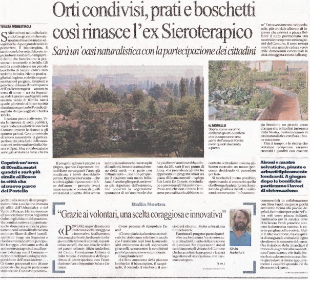 Un’intera pagina di Repubblica dedicata al progetto e dalla realizzazione del Parco, con interviste a all’Associazione Parco Segantini, al Vicesindaco Ada Lucia De Cesaris e a Italia Nostra Milano Nord.