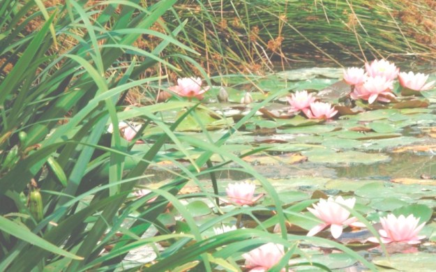 nella luce del tramonto tra le ninfee.