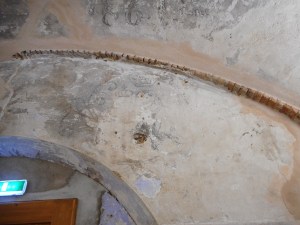 E’ durante questo restauro che sulla lunetta del prospetto meridionale interno della stalla è emerso un disegno (povero, semplice ma chiaro)